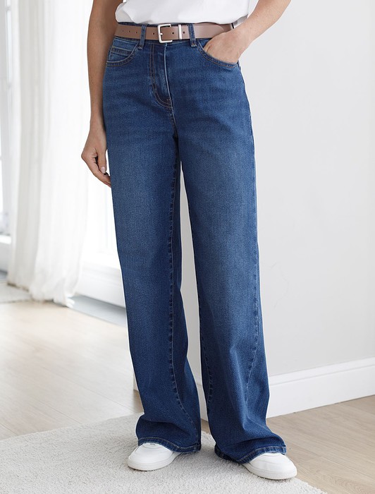 Совместные покупки Тюмень Женская одежда Футболки — Джинсы прямые с декоративной стиркой из эластичного плотного денима