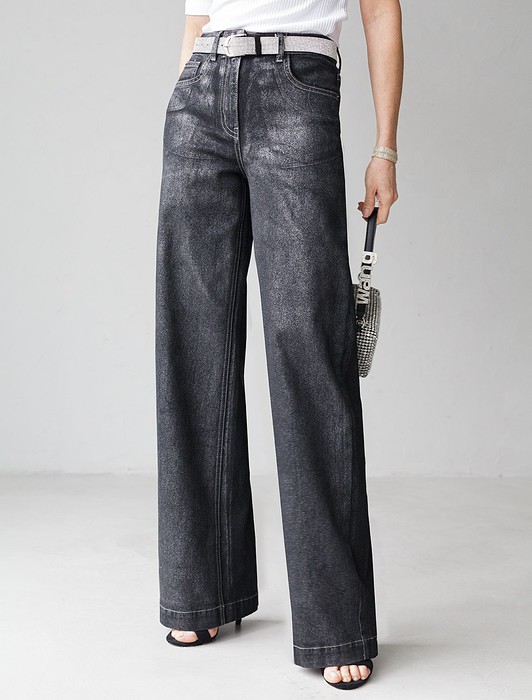 Состав: 75%Хлопок 23%ПЭ 2%ПУ Плотность: 10,9 OZСтильные джинсы трубы выполнены из эластичного денима, который комфортно садится на любую фигуру, в том числе большие размеры, и обеспечивает свободу движений. Благодаря декоративному металлизированному покрытию материал приобретает эффект варенки и придает модели уникальный характер, подчеркивая индивидуальность и современный вкус. Прямые свободные джинсы формируют красивый силуэт и визуально вытягивают ноги, подчеркивая достоинства фигуры. Снизу предусмотрен аккуратный широкий подгиб, который добавляет завершенности образу. Материал отличается высокой плотностью и эластичностью, что обеспечивает долговечность изделия. Эти стильные джинсы металлик созданы для тех, кто ценит сочетание удобства и яркого внешнего вида в повседневной одежде. Джинсы с эффектом металлик — довольно броский элемент гардероба, поэтому верх лучше выбирать лаконичного дизайна, чтобы не перегрузить образ, например, однотонные футболки, блузки или свитера, а кожаная куртка в осеннем луке в комплекте с этими джинсами добавит образу динамичности, при этом сохраняя женственность.