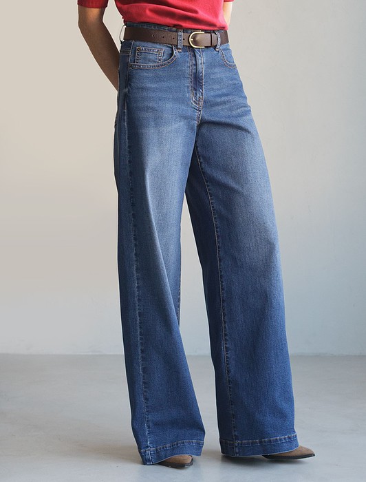 Совместные покупки Тюмень Женская одежда Костюмы, комплекты — Джинсы трубы с декоративной стиркой из эластичного денима средней плотности