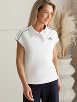 Совместные покупки Тюмень Женская одежда Поло — ESENIA Джемпер поло ажурный из вискозы с коротким рукавом - Бордовый