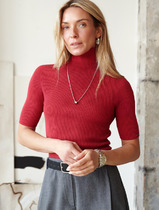 Vilatte Водолазка тонкой вязки в рубчик из хлопка с нейлоном D34.198 темно-красн