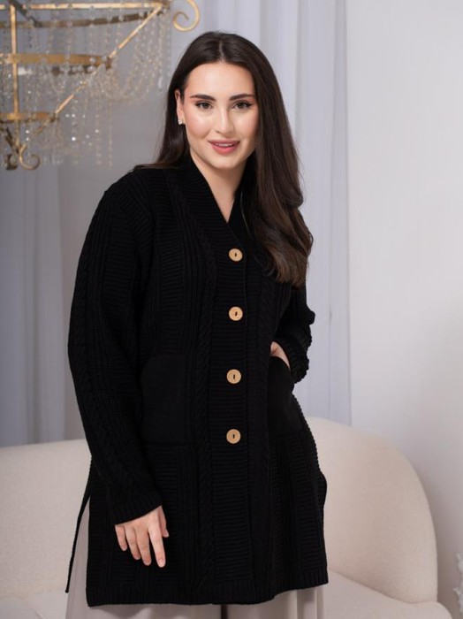 ESENIA Кардиган женский полушерстяной удлиненный с косами - Чёрный, Серый