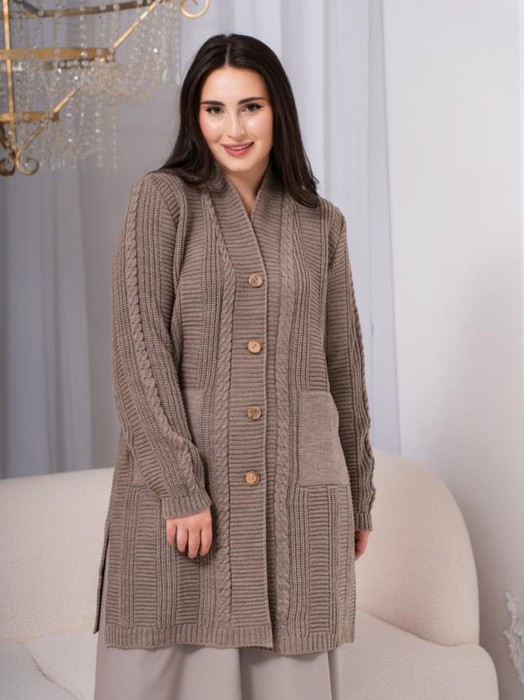 Совместные покупки Тюмень Женская одежда Кофты, кардиганы — ESENIA Кардиган женский полушерстяной удлиненный с косами - Коричневый