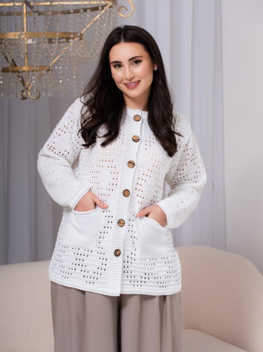 ESENIA Кардиган женский с ажурным рисунком - Белый