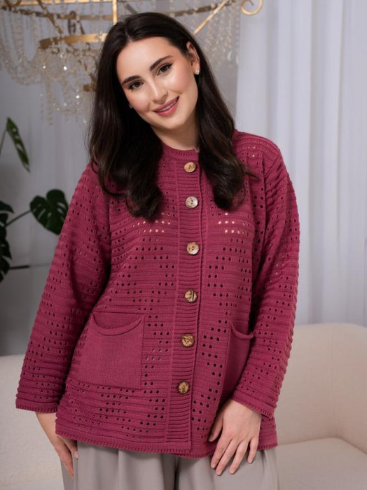 Совместные покупки Тюмень Женская одежда Кофты, кардиганы — ESENIA Кардиган женский с ажурным рисунком - Брусника