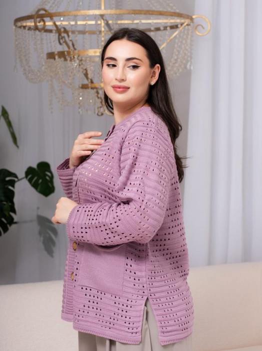 Совместные покупки Тюмень Женская одежда Кофты, кардиганы — ESENIA Кардиган женский с ажурным рисунком - Тёмно-розовый