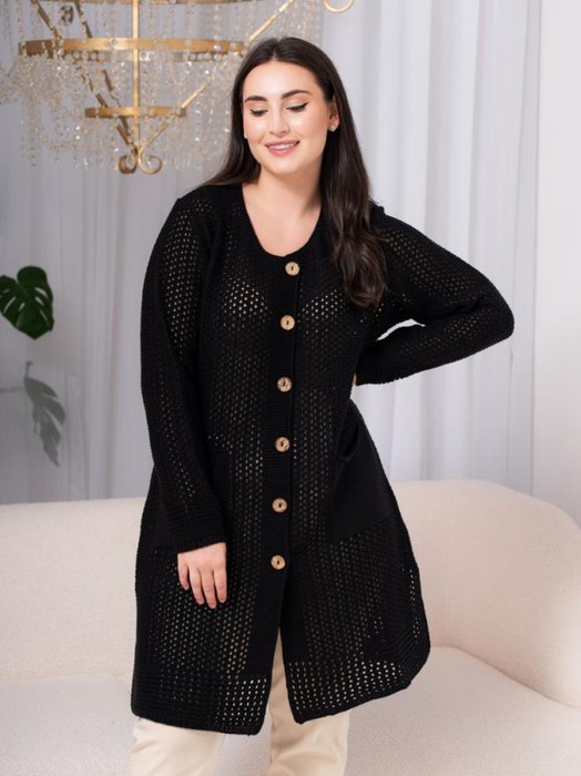Совместные покупки Тюмень Женская одежда Кофты, кардиганы — ESENIA Кардиган женский удлинённый ажурный - Чёрный