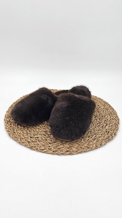 Совместные покупки Тюмень Женская обувь Домашняя обувь — ESENIA Тапочки домашние женские из меха эко-норки - Коричневый