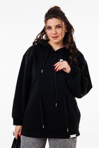 Модель толстовки с небольшим разрезом по бокам. Спинка немного длиннее, чем передняя часть