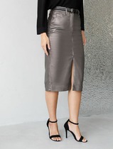 09.04 Vilatte Юбка карандаш металлик средней длины с разрезом из эластичного де