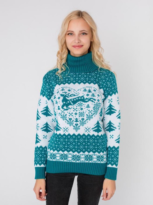 Совместные покупки Тюмень Женская одежда Джемперы, свитеры, водолазки — ESENIA Водолазка женская полушерстяная Олени - Изумруд