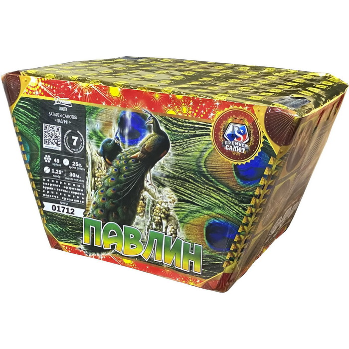 Даже дети знают о красоте и пышности павлиньих хвостов, будто усыпанных драгоценными каменьями. Веерный фейерверк "Павлин" не уступит этой птице: он так же красив и пышен. 49 зарядов создают панораму в форме веера, действительно чем-то напоминающую хвост павлина.