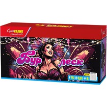 1. Красные звезды с пышными хвостами (кокос) и белое мерцание. 2. Свистящая комета. 3. Множество золотых ниспадающих нитей (парча) и зеленое мерцание. 4. Трещащая комета. 5. Зеленые звезды с пышными хвостами (кокос) и белое мерцание. 6. Зелено-фиолетовая сфера (пион) и облако треска (трещащий дождь). 7. ЗАЛП: Зеленые звезды с пышными хвостами (кокос) и облако треска (трещащий дождь).