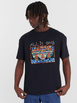 Футболка мужская из меланжированного трикотажного полотна "кулирка", свободного покроя, со спущенным плечом и втачными короткими рукавами. Горловина овальной формы обработана втачной планкой. По шву втачивания планки настрочена двойная отделочная строчка. В центре переда - принт, выплненный в технике шелкографии.