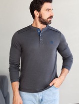 Джемпер хенли из полотна пике с меланжевым плетением с эластаном