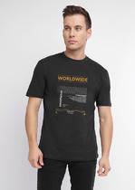 Мужская футболка из рибаны. Спортивный дизайн, короткие рукава, спереди принт в виде маленького шильда. Четыре варианта расцветки — белая, голубая, черная и антрацитовая. Размеры от 46 до 54. Есть возможность заказать данный товар в розницу.