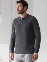 Лонгслив из мягкого фактурного трикотажа с плетеным воротником поло на пуговицах