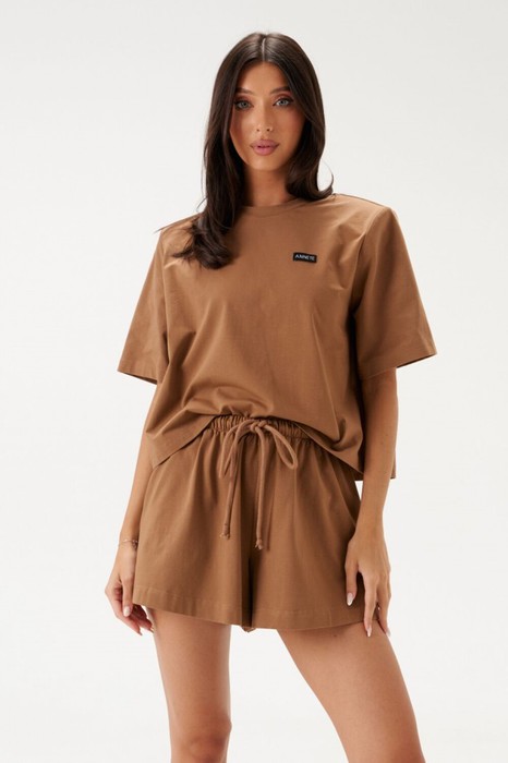 Футболка прямого свободного кроя с акцентными плечами выполнен из хлопкового полотна.Характеристики: прямой крой, подплечники (съёмные), овальный вырез горловины, по переду брендированная нашивка, рукав втачной. Длина спинки 51 см, длина рукава 28 см.