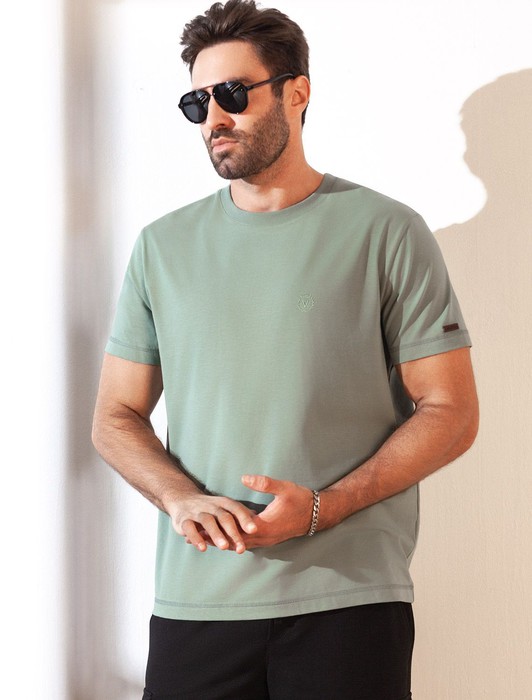 Однотонная футболка выполнена в минималистичном стиле, дополнена аккуратной вышивкой на груди в виде буквы V в тон изделия, а так нашивкой на рукаве из эко-кожи с логотипом VILATTE. Подходит как классический вариант для работы в офисе под пиджак, так и для повседневной носки или занятий спортом. Мягкая ткань приятна к телу, не вызывает дискомфорта и идеально подходит для дома или летних прогулок благодаря короткому рукаву.