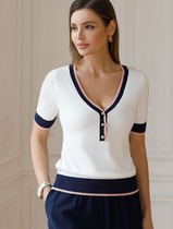 АКЦИЯ 8 марта! Джемпер с V-вырезом с коротким рукавом из вискозы.