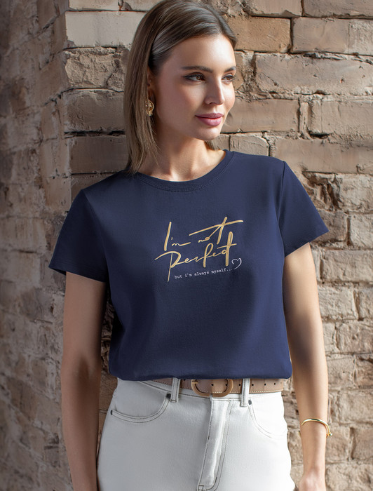 Состав: 100%Хлопок Плотность: 140 Г/м2Перевод принта: "I am not perfect, but I'm always myself - я не идеальна, но я всегда настоящая". Футболка прямого кроя выполнена из 100% хлопка. Базовая модель дополнена лаконичным авторским принтом. Легко впишется в повседневный гардероб. Изделие хорошо держит форму и обеспечивает комфортный микроклимат в течение дня.