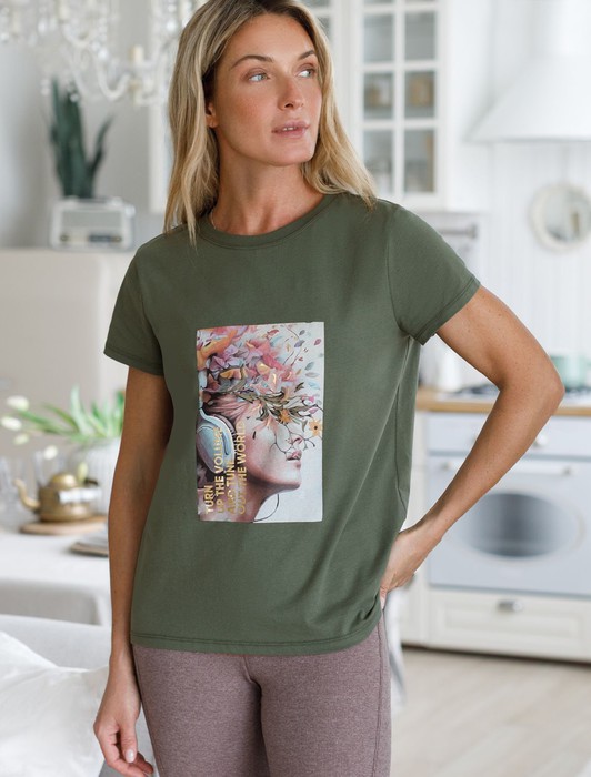 Состав: 100%Хлопок Плотность: 140 Г/м2 Параметры модели на первом фото: Рост 172, бюст 88, талия 64, бедра 88Перевод принта: Turn up the volume and tune out the world - сделай музыку громче и отключись от мира. Футболка прямого кроя выполнена из 100% хлопка. Базовая модель дополнена лаконичным авторским принтом. Легко впишется в повседневный гардероб. Изделие хорошо держит форму и обеспечивает комфортный микроклимат в течение дня.