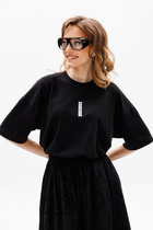 Состав: 92%Хлопок 8%ПУ Плотность: 170 Г/м2 Параметры модели на первом фото: Рост 172, бюст 88, талия 64, бедра 88Футболка выполнена из премиального хлопка. Модель дополнена ассиметричным низом драпирующийся изящными волнами. Наличие эластана в составе изделия гарантирует комфорт и формоустойчивость. На рукаве металлический логотип бренда. Хорошо впишется как в праздничный образ, так и в повседневный аутфит.