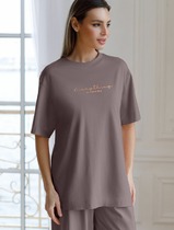 Vilatte Футболка оверсайз с принтом из премиального 100% хлопка D49.157 кофе_eve