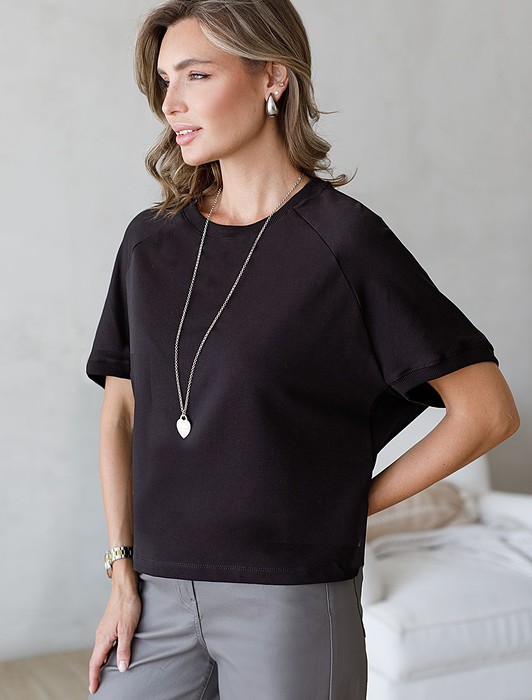 Состав: 95%Хлопок 5%ПУ Плотность: 240 Г/м2 Параметры модели на первом фото: Рост 172, бюст 88, талия 64, бедра 88Футболка с рукавами регланами выполнена из эластичного футера двухнитки. Свободная модель со спущенной линией плеча легко поможет составить образы в расслабленном стиле. Сочетается в костюме с брюками D44.135, D44.136 и юбкой D46.034. Наличие эластана в составе изделия гарантирует абсолютный комфорт и формоустойчивость.
