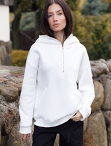 Джемпер из трикотажной хлопковой ткани, со спущенным плечом. По переду джемпера расположены декоративные элементы. Вырез горловины круглый, оформлен бейкой. Спинка без среднего шва.