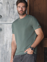Состав: 92%Хлопок 8%ПУ Параметры модели на первом фото: Рост 190, бюст 108, талия 87, бедра 104Футболка силуэта slim fit выполнена из премиального хлопка. Мягкая хлопковая ткань приятно ощущается на коже и хорошо пропускает воздух. Ткань содержит эластан, за счет чего тянется и хорошо сидит по фигуре. Не теряет форму после многократных стирок и сохраняет форму в течении долгого времени. Базовая модель дополнена сбоку вшитым логотипом бренда из эко-кожи.