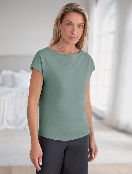 Футболка из 100% хлопка с цельнокроеным рукавом. Изделие отлично держит форму, почти не мнется и комфортно сидит по фигуре. Отдельным украшением служит металлический логотип бренда.
