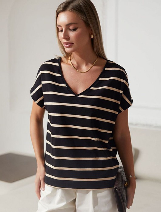Совместные покупки Тюмень Женская одежда Футболки — Футболка Vilatte D49.100 черный-бежевый