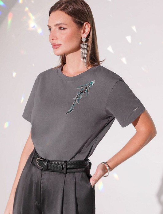Эта эффектная футболка станет отличным выбором на праздник, подчеркивая образ сияющей и уверенной в себе девушки или женщины. Если вы ище