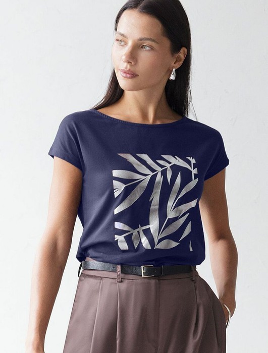 Совместные покупки Тюмень Женская одежда Футболки — Футболка Vilatte D49.134 т.синий_листики