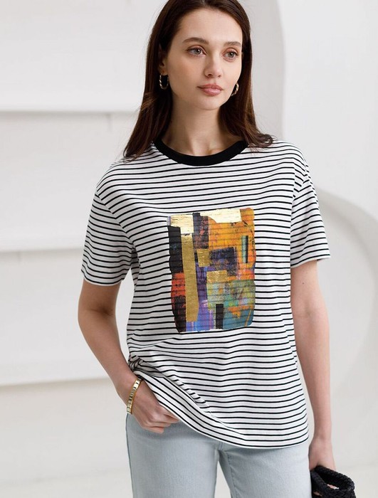 Совместные покупки Тюмень Женская одежда Футболки — Футболка Vilatte D49.145 белый-черный_абстракция