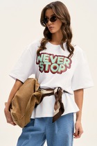 Vilatte Свободная футболка с принтом из премиального хлопка с эастаном D49.146 б
