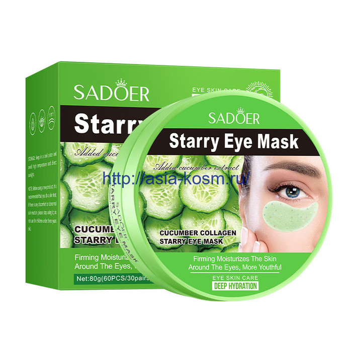 Совместные покупки Тюмень Косметика и парфюмерия Прочий уход за лицом — Гидрогелевые колагеновые патчи Sadoer для кожи вокруг глаз с огурцом(95329)