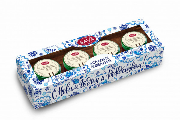 Набор состоит из четырех баночек необычных сибирских лакомств, на крышке которых собраны приятные пожелания.