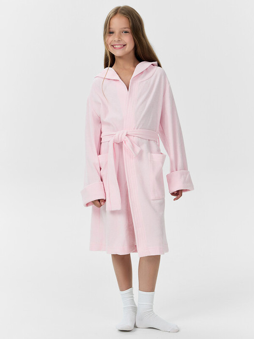 Халат с запахом, с съемным поясом, продетым в шлевки в боковых. Рукава длинные, одношовные.