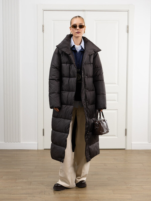 Пуховик прямого силуэта на молнии и потайных кнопках.