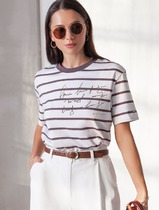 Свободная футболка в широкую полоску с принтом из премиального хлопка с эластано
