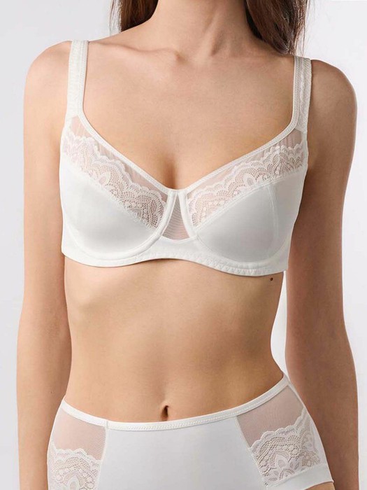 Классический белый кружевной бюстгальтер на косточках с мягкими чашками, обеспечивающий комфорт и поддержку для разных размеров, включая plus size.