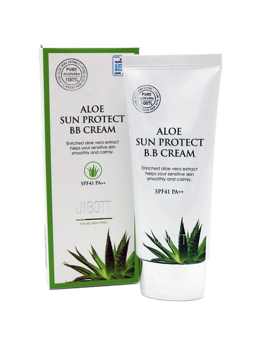 Многофункциональный ВВ-крем JIGOTT Aloe Sun Protect BB Cream SPF 41 PA++ с экстрактом алое эффективно увлажняет и успокаивает кожу, маскирует несовершенства кожи, создает ровное красивое покрытие и защищает от ультрафиолета.