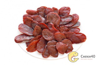 кальмар гигантский, влагоудерживающий агент (подсластитель) сорбит, сахар, лактоза пищевая, соль, ароматизатор пищевой сухой краб, краситель пищевой "Красный рисовый", усилитель вкуса и аромата глутамат натрия 1- замещенный, антиокислитель лимонная кислота, усилитель вкуса и аромата глицин и его натриевая соль, регулятор кислотности уксусная кислота ледяная, консервант сорбат калия. Содержит подсластитель. При чрезмерном употреблении может оказывать слабительное действие. Может содержать следы рыбы и продуктов ее переработки. Не содержит ГМО.