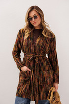 Женский кардиган – идеальный выбор для тех, кто ценит комфорт, стиль и универсальность. Эта вязаная кофта предназначена для женщин, желающих всегда выглядеть модно, будь то осень, зима,  весна или лето. Благодаря своему крою, изделие подходит как для повседневной носки, так и для особых случаев, подчеркивая вашу индивидуальность и женственность. Лёгкий трикотажный материал делает эту вещь отличным вариантом для теплого времени года, обеспечивает необходимое тепло в прохладную погоду. Кофта отлично садится на любые типы фигуры в стиле оверсайз, идеально подходит для беременных. Модель выполнена в трендовых цветах 2025 года, что гарантирует актуальность вашего гардероба. Этот женский кардиган легко комбинируется с другой одеждой – от строгих брюк до легких платьев, подходит для офиса и прогулок. Особое внимание уделено деталям и аккуратной отделке. Чтобы ничего не сковывало ваши движения, а для практичности - накладные карманы и пояс. Нарядная и женственная модель подчеркивает достоинства фигуры и делает образ завершенным. Главное конкурентное преимущество – сочетание качества премиальной вязки и современного дизайна, что выделяет этот товар среди других кофт и кардиганов на рынке. Если вы ищете стильные, трендовые и одновременно практичные решения, выбирайте этот вариант – он создан для женщин, которые ценят комфорт и индивидуальность. Длина по спинке: (50-54)-88см,  (56-60) -92см, Длина рукава: (50-54)-62см, (56-60): 64см
