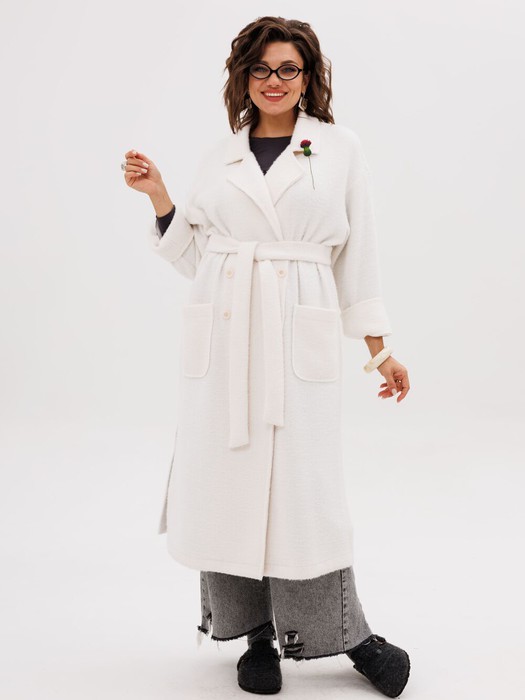 Особое очарование модели придают необработанные края - деликатная деталь, которая выглядит современно и стильно, добавляя кардигану лёгкую непринуждённость и характер. Широкие манжеты создают мягкий акцент на рукавах, а при желании их можно подвернуть, открывая изящные запястья и добавляя образу ещё больше женственности и лёгкости. Двубортная застёжка на пуговицы подчёркивает элегантность, накладные карманы делают модель практичной, а разрезы по бокам добавляют движения и воздушности. Пояс позволяет менять настроение - носить кардиган свободно или подчеркнуть силуэт, создавая более собранный и выразительный образ.