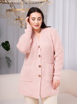 Кардиган женский из трикотажного полотна, удлинённый, свободного силуэта, без застёжки, с втачным рукавом 3/4 длины, без воротника, с боковыми разрезами и драпировкой по переду.