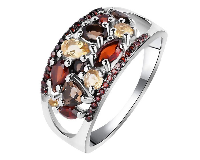 Кольцо, гранат , раухтопаз , цитрин, Сиена