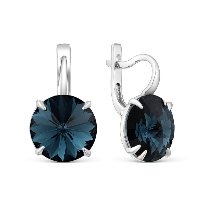 Совместные покупки Тюмень Ювелирные украшения и бижутерия Серьги — Кольцо из серебра с кристаллом Премиум Австрия тёмно-синий родированное 925 проб